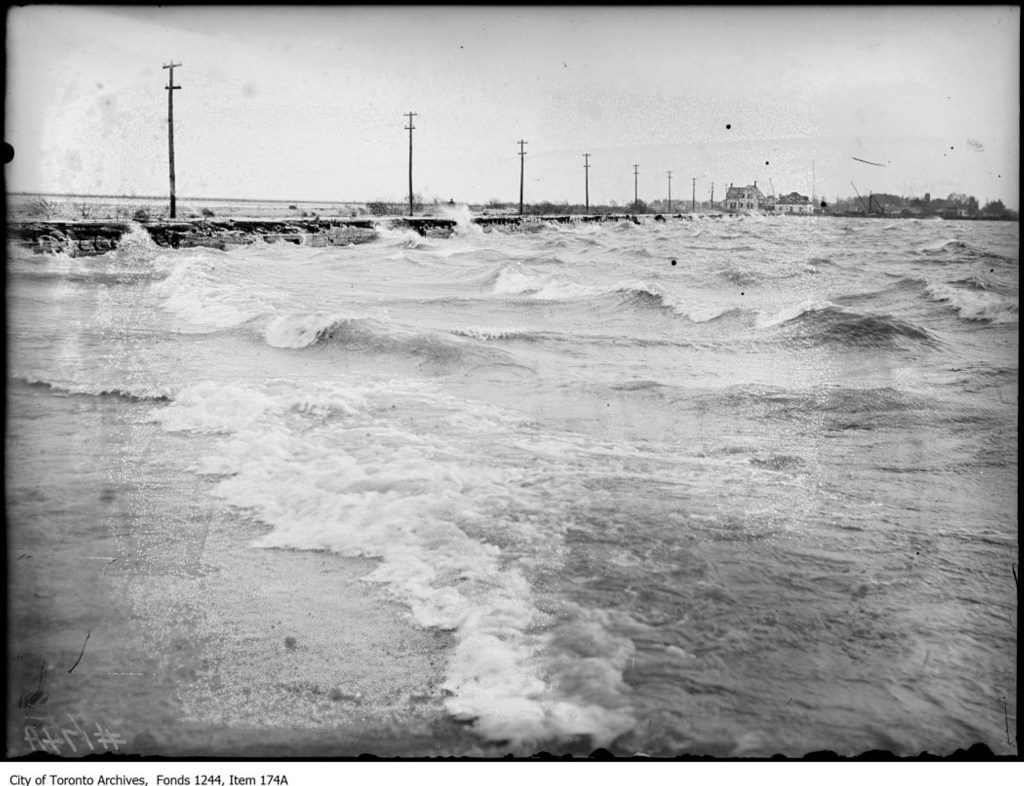 1830s development of Toronto necessitated building of harbour infrastructure. Wharves and piers. Freestanding crib structures of timber. From at least 1830s a carriage path crossed the Ashbridge’s Bay bar.