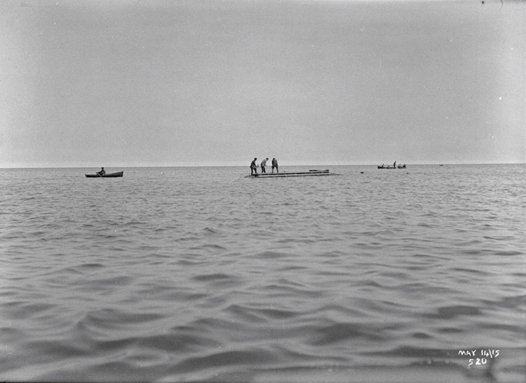 1884 The Smith Family (Thomas and Annie Smith) settled on Fisherman’s Island. First to settle there. Abundance of game and fish. Smith’s had eight children. Fishermen – prize catch whitefish. Children caught frogs which they sold across the Bay. To reach the mainland they used a row boat. A large, flat scow with railings and attached at either end by rope was hauled across by hand.
