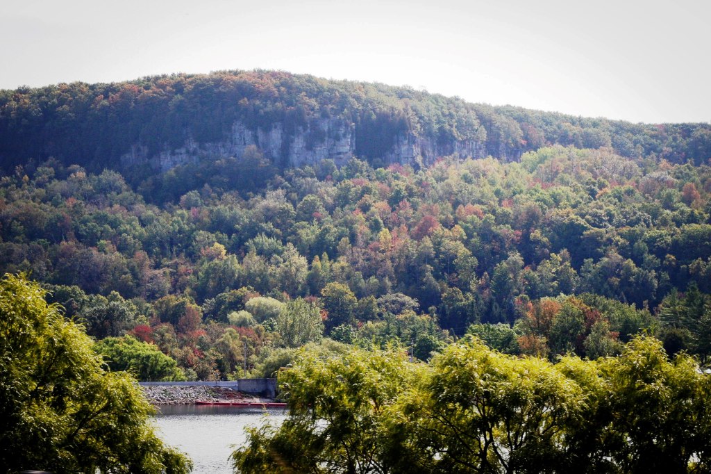 Ontario’s ice sheet was over three km (two miles) thick at the centre and at least a half at kilometre thick at the leading edge or snout. The moving ice scraped off the soft sedimentary rock, transporting the debris hundreds of miles before dropping it. The ice scalped off the edges of the Michigan Basin, pushing the rim further and further west. The hard dolostone of the Niagara Cuesta resisted, but the ice scoured and polished it. Huge waterfalls poured over the edge of the Escarpment. Water filled the basins of old river systems deepened by the ice. The Great Lakes formed.