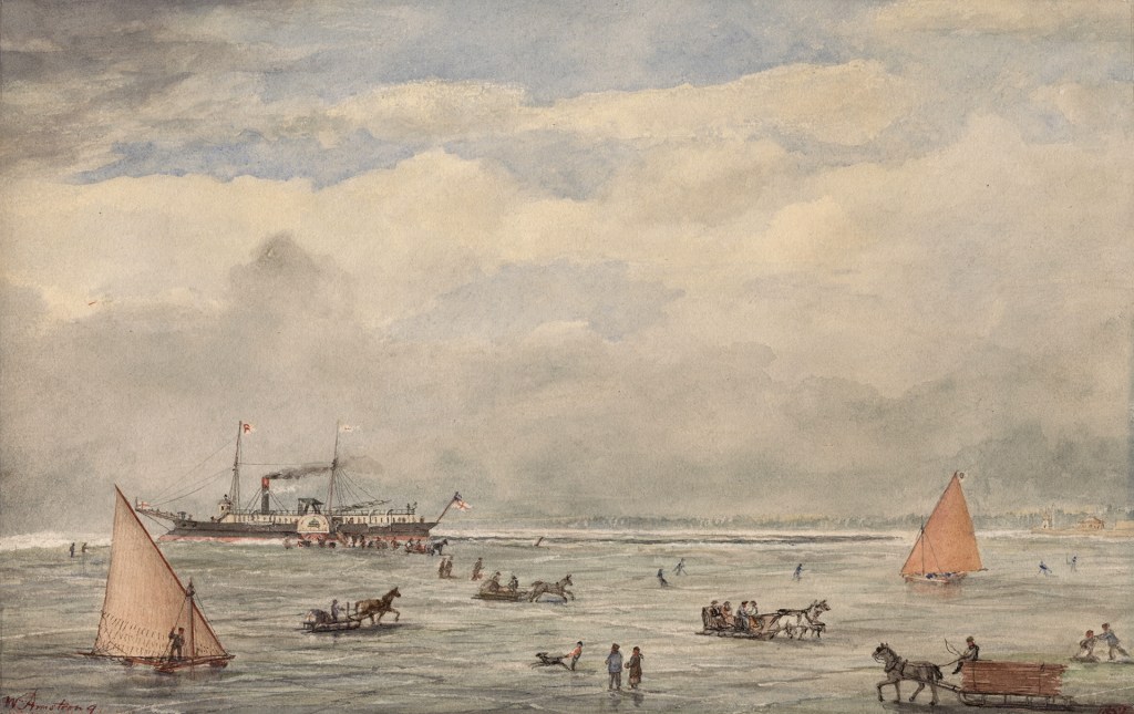 On Toronto Bay, John George Howard, 1835On Toronto Bay, looking towards the Islands from Brown’s Wharf, west of foot of Church St., Toronto, Ont., John George Howard 1835Landing Passengers on the Ice, Toronto Bay, 1852 by William Armstrong, TPLPacific, schooner; rescue of crew by Thomas Tinning, looking s.e. from shore near High Park (Dec. 1861) painted by J. G. Howard, 1875, TPLWinter in the Harbour, Toronto, Nicholas Hornyansky TPL ca 1930s