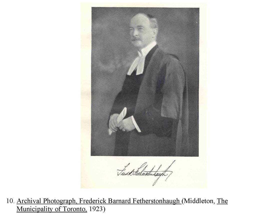 Frederick Barnard Fetherstonhaugh (1862-1945) was a Toronto attorney who founded the firm of Fetherstonhaugh and Company to specialize in patent law in 1890. Six years later, Fetherstonhaugh owned the “the first automobile to be seen on the streets of Toronto”, which …created quite a sensation at the time.”5 He resided on Spadina Avenue in Toronto, prior to relocating to Lake Shore Road (now Lake Shore Boulevard West) in Mimico where he acquired recently subdivided waterfront property west of present-day Royal York Road.