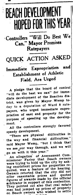 A Snowshoe Journey to the Island, Toronto Star, February 21, 1905Teams hauling earth to (Toronto) Island in Toronto Bay. 21 Feb. 1914Ice formations, looking towards shore at Toronto Island, February 21, 1914Durnan daughter goes to school by iceboat, Toronto Star, February 21, 1922Development of Beach park, Toronto Star, February 21, 1930Development of Beach park, Toronto Star, February 21, 1930Development of Beach park, Toronto Star, February 21, 1930Development of Beach park, Toronto Star, February 21, 1930
