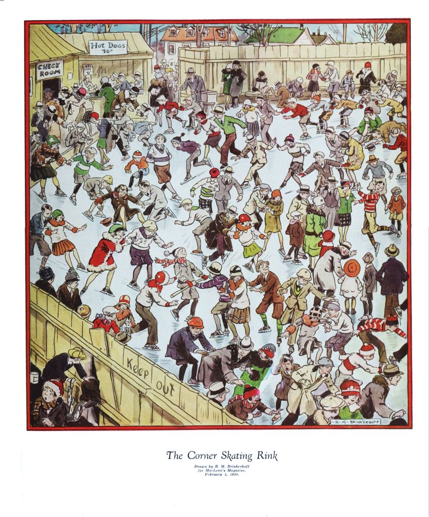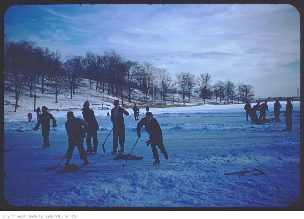 Skater rescued Ashbridges Bay Toronto Star, February 27, 1928Victoria Skating Rink, Gerrard Street East, southwest corner Sherbourne St, March 14, 1863Woman Skater about 1870, from The Picture Gallery of Canadian HistorySkating, Illustration, ca 1880Skating, The Canadian Illustrated News, January 6, 1883Cupid on the ice, The Canadian Illustrated News, February 3, 1883Skating, probably on Small’s Pond, Saturday Night, March 3, 1906Runway, workers with ice hooks (skates), conveyor, Ice house Ashbridges Bay (1907-09)Taken at the park named either Ossington Avenue Park, Willowvale Park, or Christie Pits. Note says the workman may be filling in edge of the pit, ca. 1907Skaters on the Don River, The Canadian Courier, Vol. V, No. 8 (January 23rd, 1909)Skaters in High Park. – [ca. 1910]Skaters in High Park – [ca. 1910] William James family fonds, colourizedWinter sports, skating on Grenadier Pond, ca 1913James Williams, Kew Beach speed skater, Toronto Star, 30 Jan 1913Skater drowns Ashbridge’s Bay, The Berlin News Record, December 30, 1913Hockey, Ashbridge’s Bay, November 24, 1914Skating, Toronto Star, December 26, 1914Soldiers enjoying a Skate High Park, 1916Skating, Christmas card, 1917Crowds, Kew Gardens skating, Toronto Star, February 1, 1918The New Skating Rink at High Park has Just Opened, January 16, 1926 by John BoydHockey Game – High Park – January 1, 1927Skating rink, Maclean’s, February 1, 1930Skating carnival, Deborah Coulson, Marian Magee, beach girls – April 8, 1930Skating to music, Globe and Mail, February 14, 1953Skating on Grenadier Pond, High Park, January 1954High Park, skating on puddles, 1954Avelino Gomez, jockey, skating High Park, February 7, 1961Playing hockey on Centre Island ca 1968Skating, Toronto Island, 1970Playing hockey on a frozen Toronto Harbour – [between 1972 and 1981]Biggest hockey rink is at Michael Coyle’s disposal as he skates by himself with a hockey stick and puck in the middle of the lagoon off Algonquin Island, Jan. 9, 1973 by Boris SpremoSkating on lagoon, Toronto Island, 1977-1998Skating, February 8, 1995 by Andrew Stawicki, Toronto Star