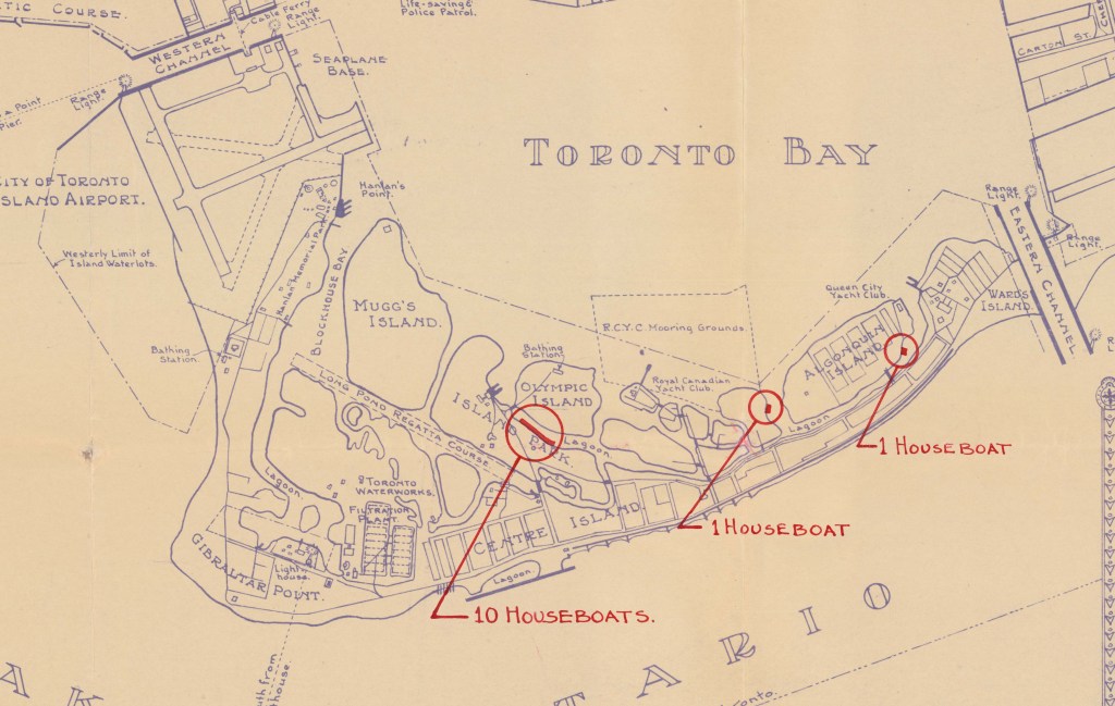 Item is a plan showing of the Toronto Harbour, it has been modified to show the location of houseboats.Item is a plan showing of the Toronto Harbour, it has been modified to show the location of houseboats.The Toronto Harbour Commissioners – condition plan, March 2, 1939