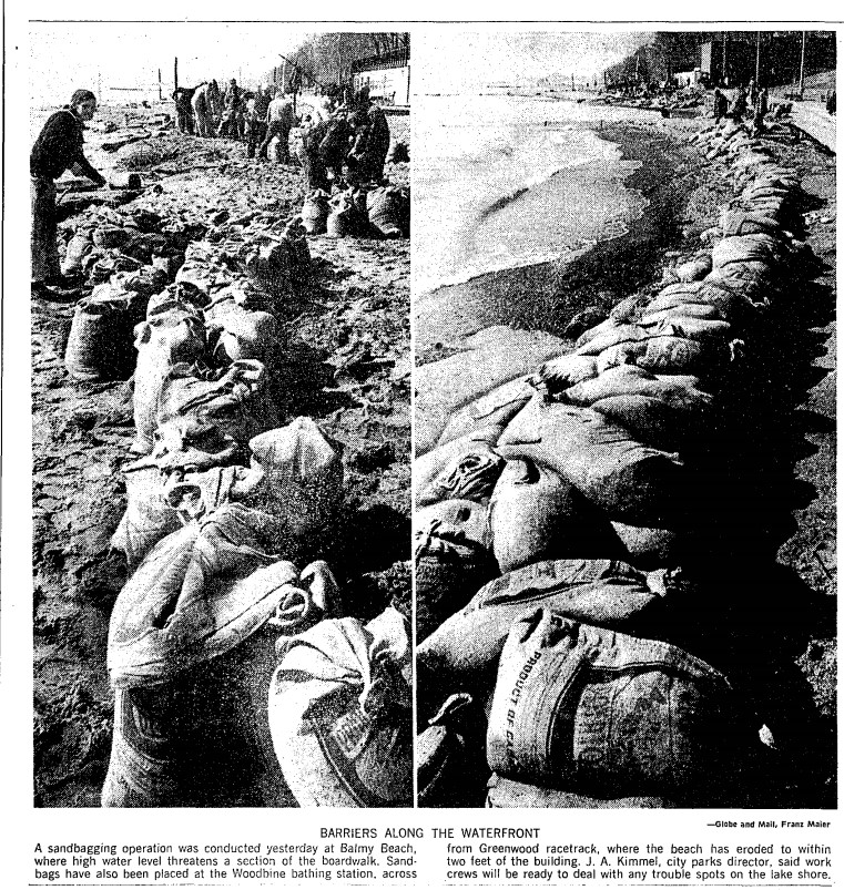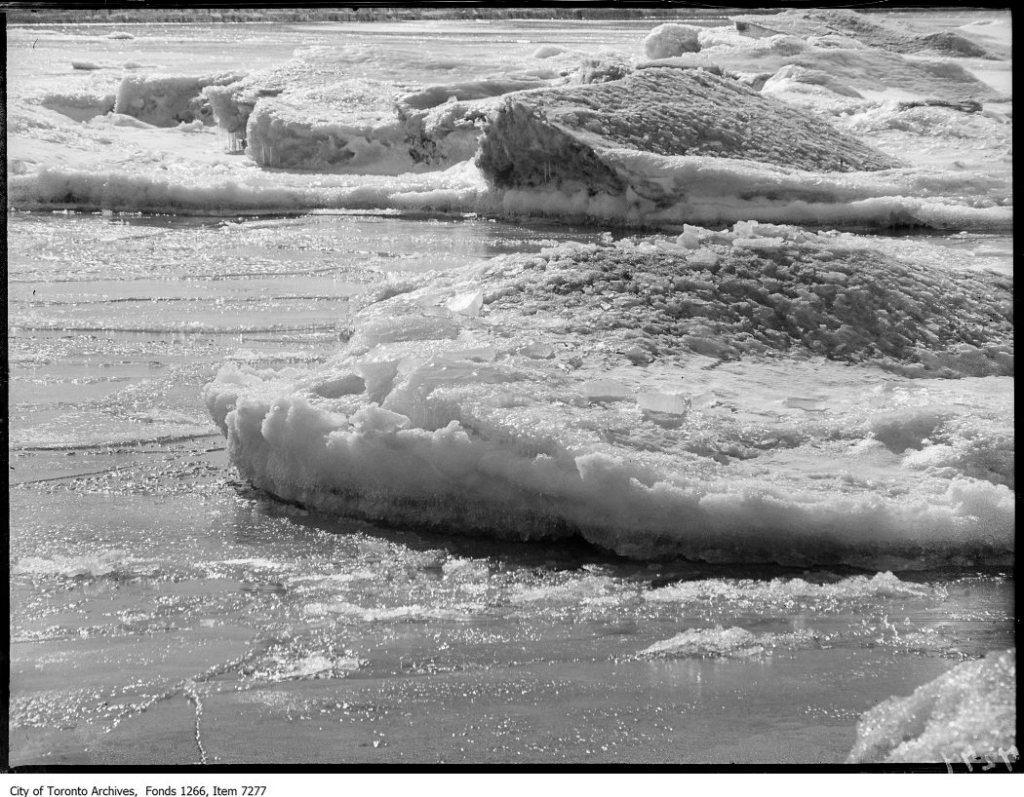 Ashbridges Bay ice free, Globe, March 9, 1882Ice formation, Sunnyside, sun on floes. – March 9, 1926Ice formation, Sunnyside, overhanging mass of ice. – March 9, 1926Sandbags Balmy Beach Globe & Mail, March 9, 1973Sandbags guard eastern beaches, 16-year-old Dale Lockhart guides her blind poodle, Merry Christmas, along a sandbag wall, March 9, 1973 by Ron Bull