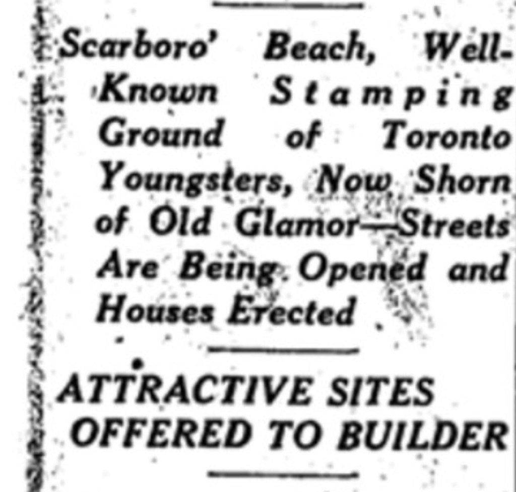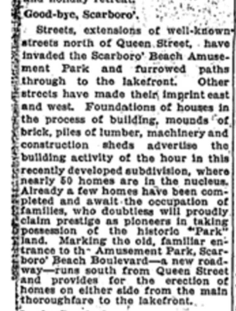 Scarboro Beach Park developed for housing, Globe, April 30, 1926
