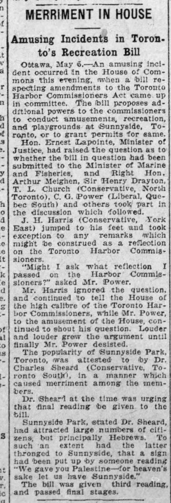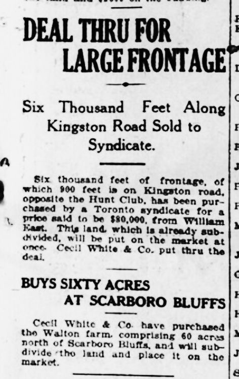 Real Estate deal, Kingston Road, Toronto World, May 6, 1914Parkdale Canoe Club, May 6, 1925 by John BoydSunnyside and the Toronto Harbor Commission, The Gazette, Wednesday, May 6, 1925A residence on Fallingbrook Crescent, Toronto Star, May 6, 1938Don Rowing Club, Toronto Star, May 6, 1939Don Rowing Club, Toronto Star, May 6, 1939Tangled metal Woodbine, City officials blame the conditions on three days of high winds, May 6, 1966, by Jeff Goode, Toronto Star