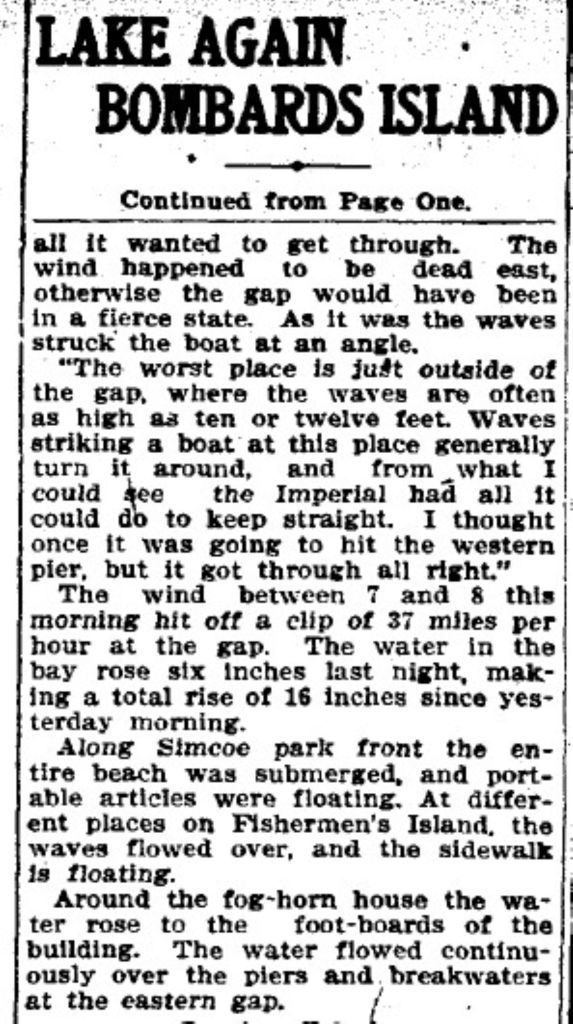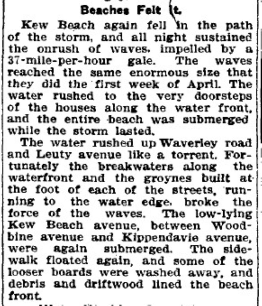Lake again bombards Island and Beaches, Toronto Star, May 7, 1908