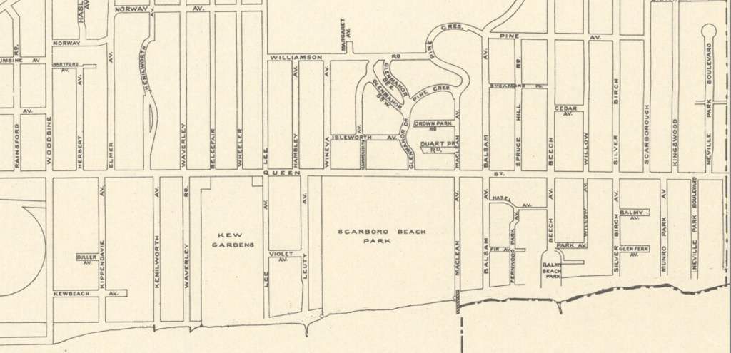 Lakeshore Road looking west [copy neg. January 7, 1975] – May 19, 1914Dance Hall, Leuty Ave., Toronto Star, May 7, 1919Boys on a raft and in canoes at Sunnyside Beach. May 7, 1916, Library and Archives Canadadetail, 1921 Plan of the City of Toronto, Tracy D Le May, City Surveyor, 1921 City of Toronto Archives Fonds 200 Series 726New Dock, Ward’s Island, Toronto, Ont., May 7, 1936 Library and Archives CanadaBeaches League Opener, baseball, Globe & Mail, 07 May 1951