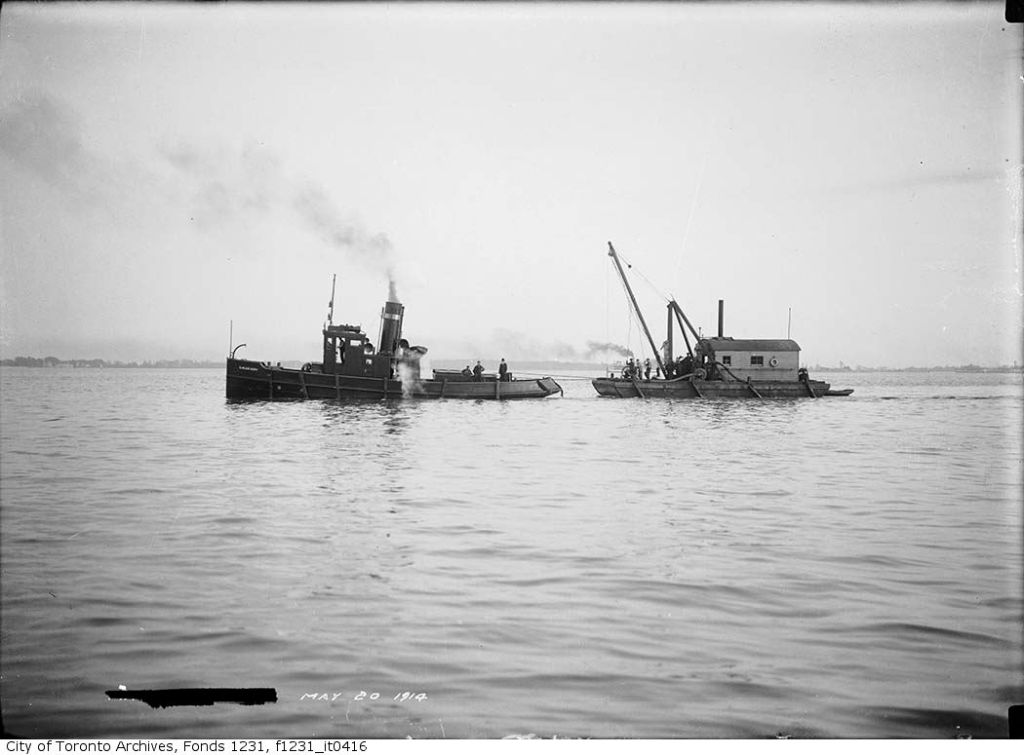 Squatters on the sandbar, Globe, May 20, 1881Poster for Pantzer acrobatsScarboro Beach opening, Toronto World, May 20, 1911Tug G. R. Geary towing a dredge – May 20, 1914West from Kenilworth Ave. – groyne – May 20, 1929Toronto Bay, Schooner Bluenose – May 20, 1932Bluebell ferry (paddle wheel steamer) Toronto Island service at Toronto Dry Dock May 20, 1956 by James Victor Salmon TPL