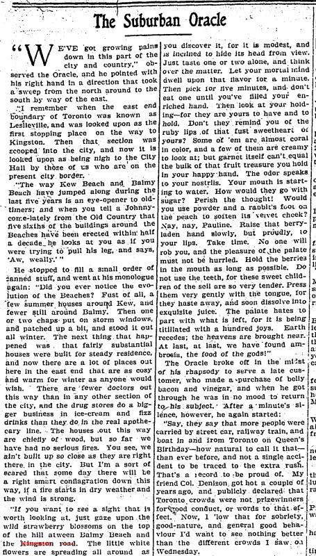 Lots for sale, Balmy Beach, Globe, May 27, 1885The Suburban Oracle, Early Days Kew and Balmy Beaches, Toronto Star, May 27, 1905The Suburban Oracle, Early Days Kew and Balmy Beaches, Toronto Star, May 27, 1905The Suburban Oracle, Early Days Kew and Balmy Beaches, Toronto Star, May 27, 1905The Suburban Oracle, Early Days Kew and Balmy Beaches, Toronto Star, May 27, 1905The Suburban Oracle, Early Days Kew and Balmy Beaches, Toronto Star, May 27, 1905The Suburban Oracle, Early Days Kew and Balmy Beaches, Toronto Star, May 27, 1905The Suburban Oracle, Early Days Kew and Balmy Beaches, Toronto Star, May 27, 1905The Suburban Oracle, Early Days Kew and Balmy Beaches, Toronto Star, May 27, 1905A Harem Bathing suit, Saturday Night, May 27, 1911Toronto Harbour Commission work, The Windsor Star, May 12, 1928Houses scheduled for demolition, Globe, May 27, 1930 Eastern BeachesBeaches Facelift, Globe and Mail, May 27, 1955Beaches Facelift, Globe and Mail, May 27, 1955Beaches Facelift, Globe and Mail, May 27, 1955Beaches Facelift, Globe and Mail, May 27, 1955