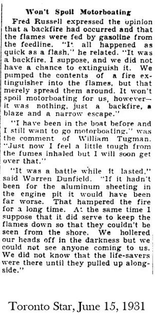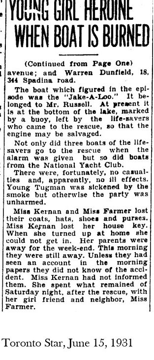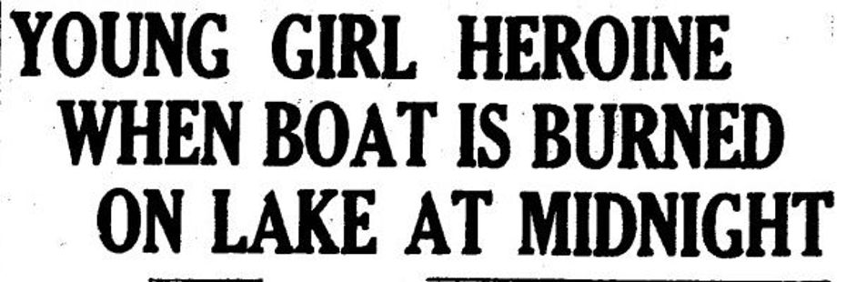 Young Girl Heroine when boat is burn on lake at midnight, Toronto Star, June 15, 1931
