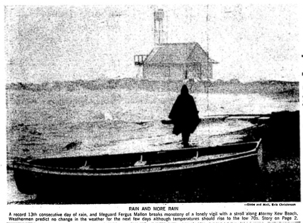 Ashbridge’s Bay from Disposal Works – June 20, 1912Balmy Beach’s Junior Four, Globe, June 20, 1925Sunnyside, June 20, 1929 TPLNear drowning Scarboro Beach, Globe, June 20, 1932Lifeguard Mallon in rain, Kew Beach, Globe & Mail, June 20, 1974The Beach south of Queen St E, Plan Showing Sewers on Park Properties, City of Toronto, June 20, 1934