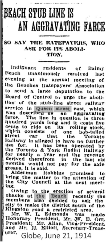 Complaints about transit and shacks, Globe, June 21, 1914Tents on reclaimed area near life saving station, Ward’s Island, Toronto, Ont., June 21, 1916 Balmy Beach Women’s War Canoe Toronto World, June 21, 1920Games Toronto Star, June 21, 1926East from Kenilworth Ave. – groynes – June 21, 1929West from Leuty Ave. – groynes – June 21, 1929Politicians view polluted Eastern beaches, Globe and Mail, June 21, 1951Baptist picnic, Kew Beach, Globe and Mail, June 21, 1952
